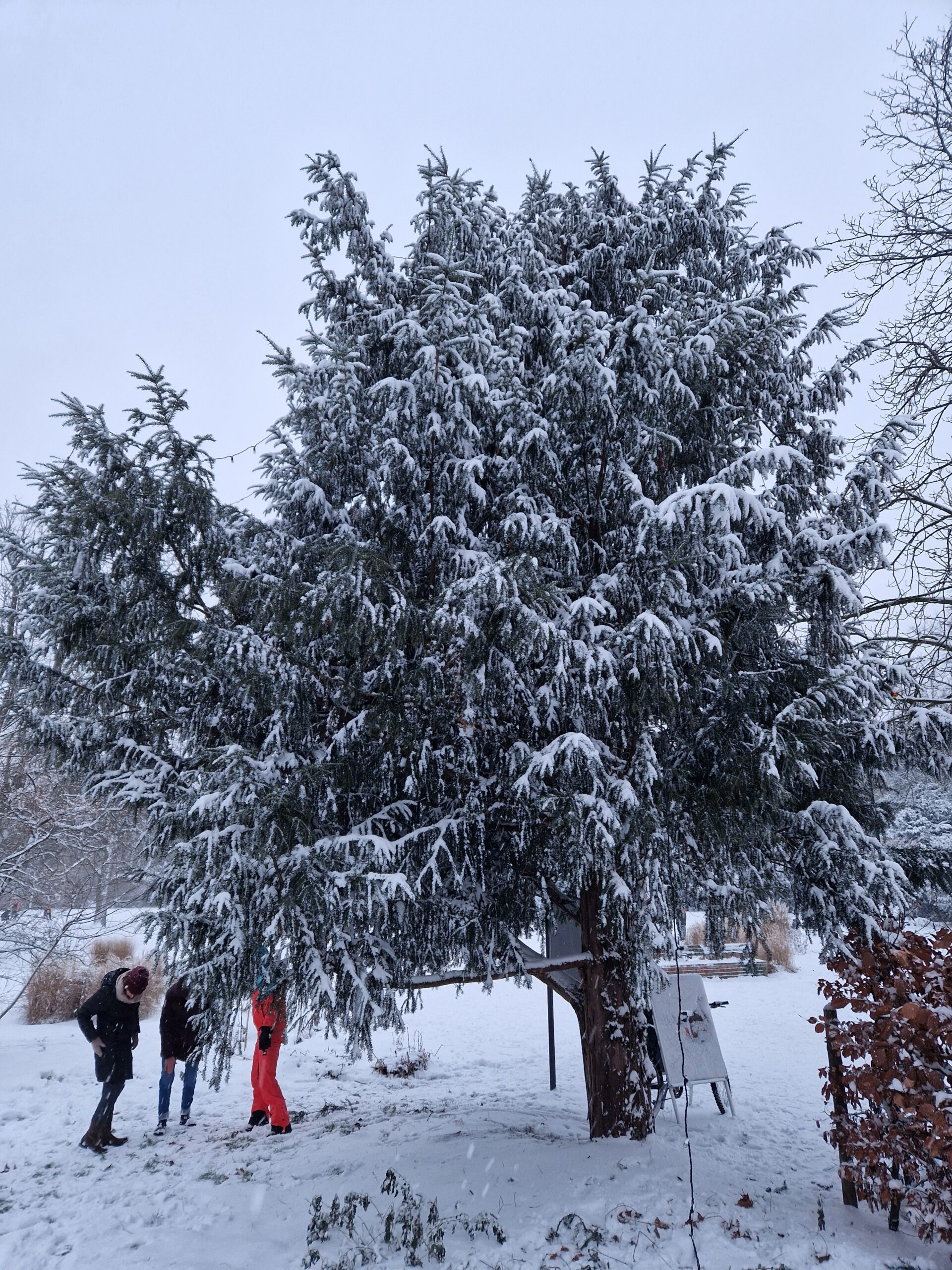 Der “Lebende Weihnachtsbaum” am Eingang des Zooparks wurde am 7. Januar von der Baumschutzgruppe wieder abgeschmückt. Allerdings grünt er momentan noch nicht wie zur Sommerszeit, denn er bekam bei eisigen Temperaturen erst mal ein schönes weißes Winterkleid verpasst und erfreut weit über die Weihnachtstage hinaus vorbeispazierende Menschen.